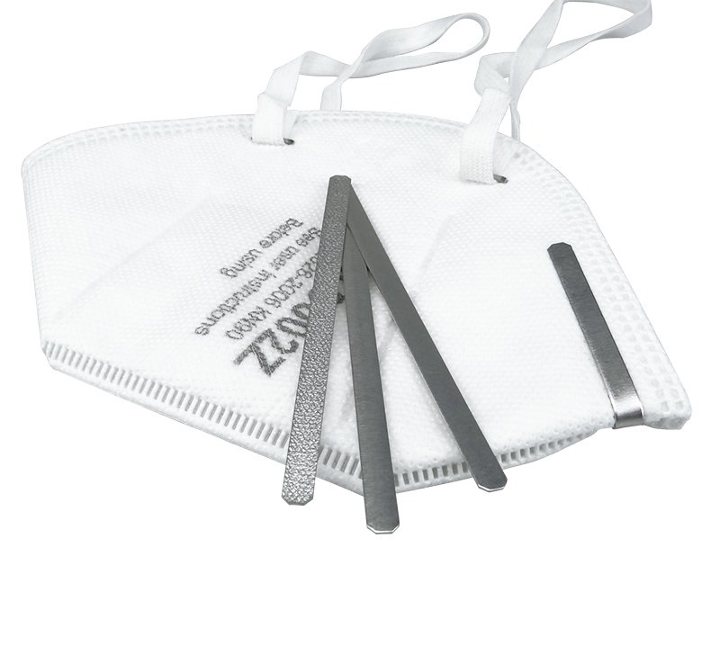 鋁質(zhì)鼻梁條規(guī)格:可選0.4mm和0.5mm厚度,長90mm,寬5mm。
